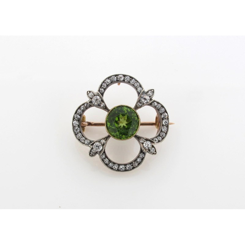 A pair of cultured pearl and diamond drop earrings, the pearls suspend from a yellow gold foliate design centred with a diamond with two smaller diamonds.