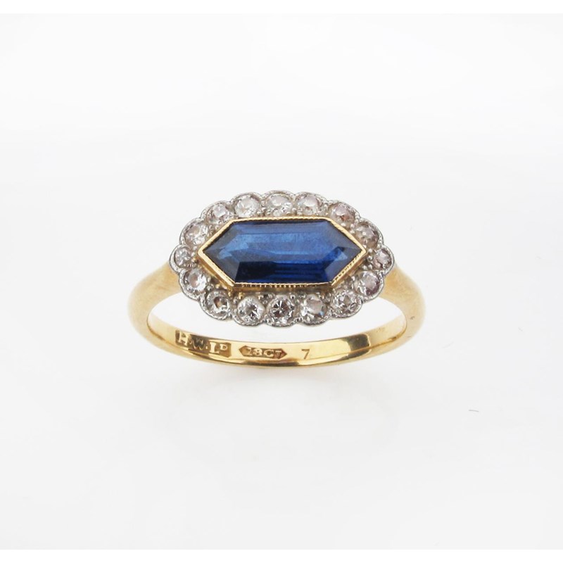 A ruby and diamond cluster ring, the oval shaped ruby is set within a surround of graduated circular cut diamonds in white gold. Size O 1/2.