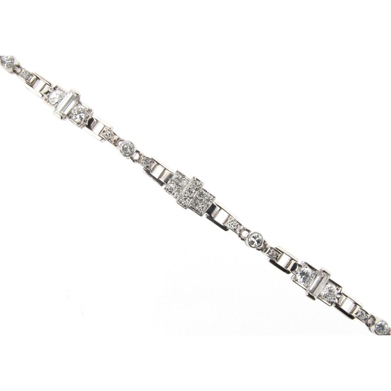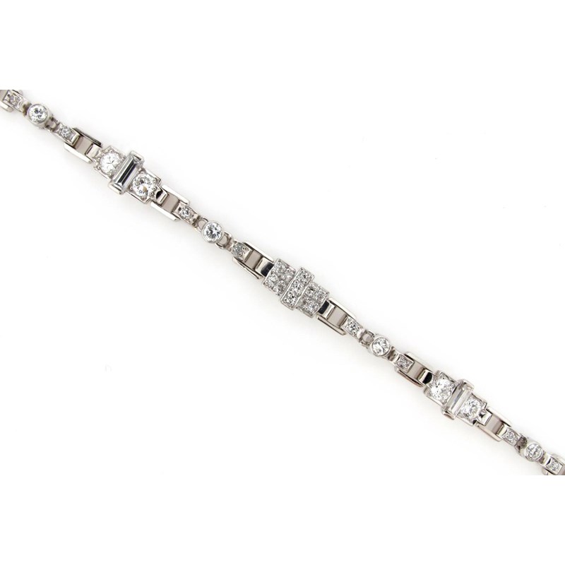 A diamond cross over ring, the two brilliant cut diamonds are millegrain set with smaller shoulder diamonds which weigh approximately 1.65cts in total. Set in white gold. Size O 1/2.