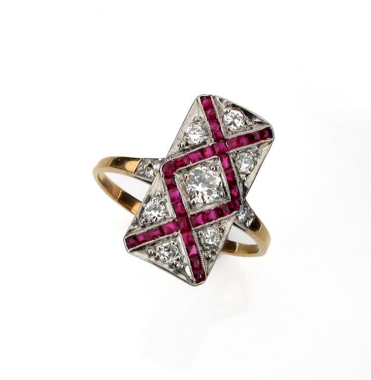 An early 19th Century diamond and ruby plaque ring