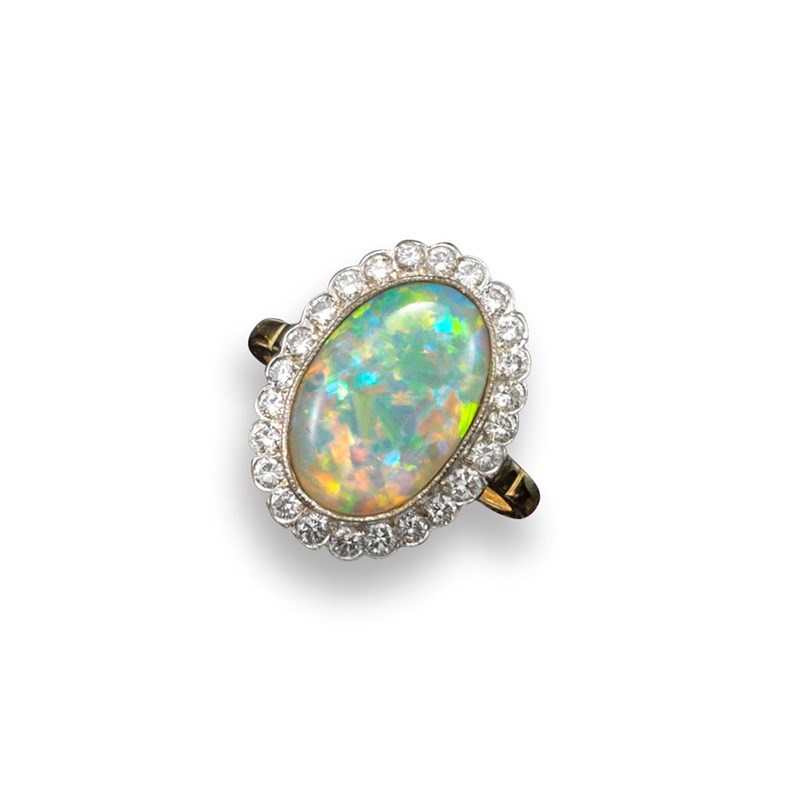 An opal and diamond cluster ring