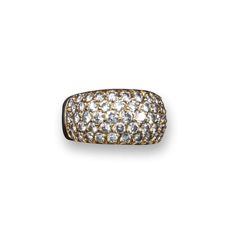 A diamond-set bombe-shaped ring by Van Cleef & Arpels, the upper section pave-set with graduated circular cut diamonds, in yellow gold. Signed Van Cleef & Arpels and numbered B5444 and A12. French control marks and maker's lozenge W.S. Stamped 750 and VCA and with import marks for London 1984. Size L 1/2.
