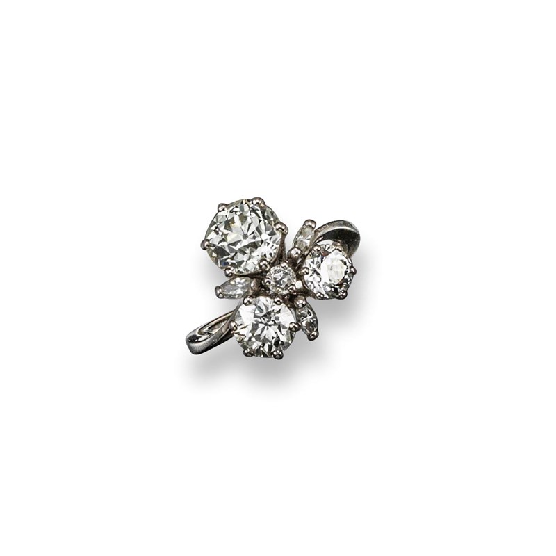 A diamond cluster ring, the three principal circular-cut diamonds weigh approximately 1.90, 1.00 and 0.60 cts, set in white gold with inner re-sizing sleeve. Size P.