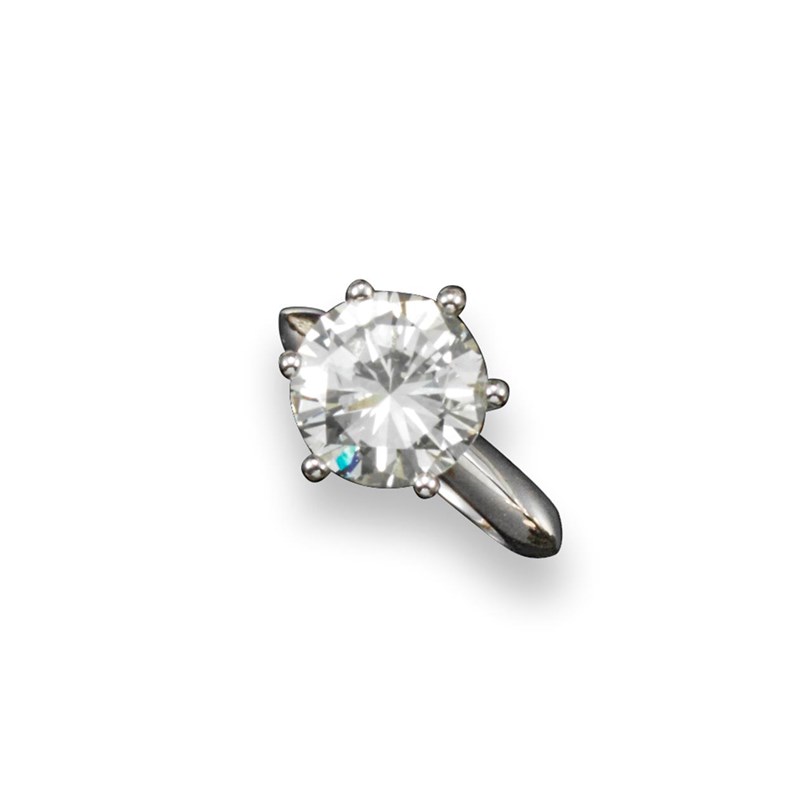 A diamond solitaire ring, the circular-cut diamonds weighs 4.98cts, set in knife-edge platinum shank. Size L 1/2.