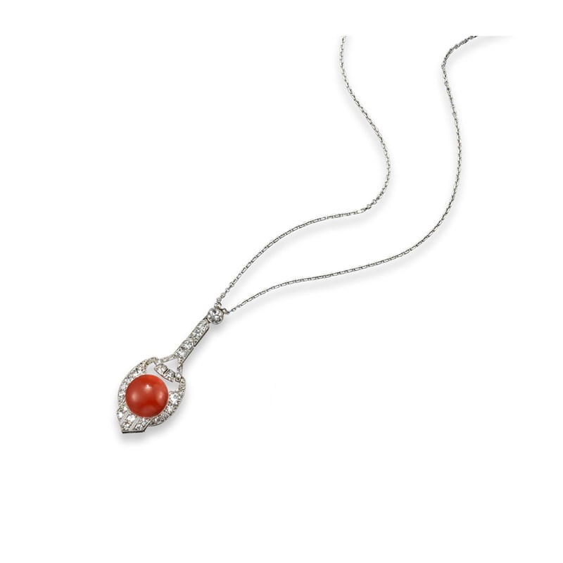 An Art Deco coral and diamond pendant