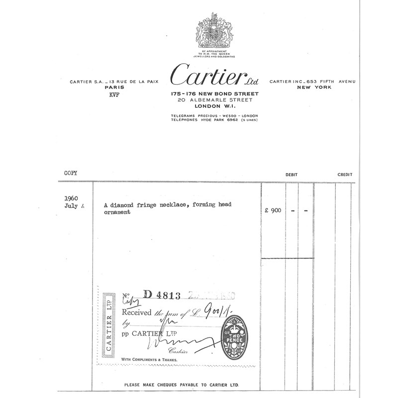 With purchase invoice from Cartier from July 4th 1960 for £900.
