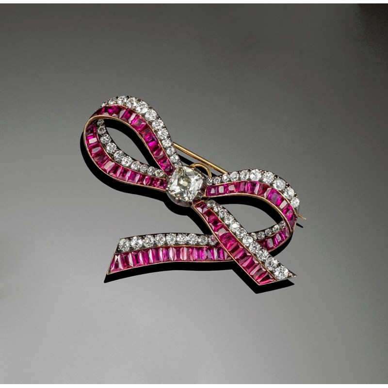 A 19th century ruby and diamond bow brooch
