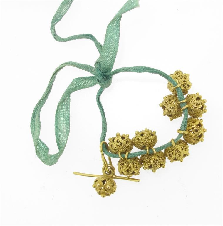 Ten filigree gold pendants. And a gold T-bar. Approximately 9g.