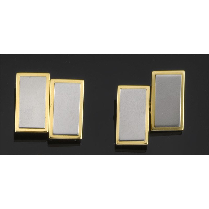 A pair of gold and steel rectangular cuff links. 2cm wide.