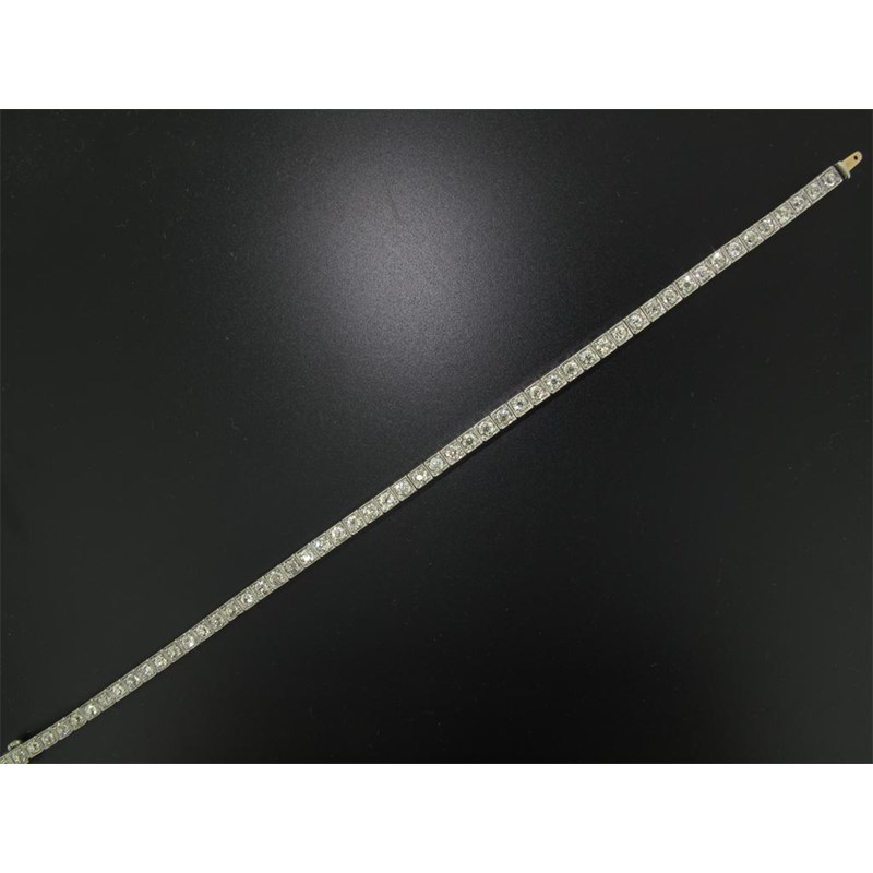 A diamond line bracelet. The old circular cut diamonds are set in white gold. 18cm long.