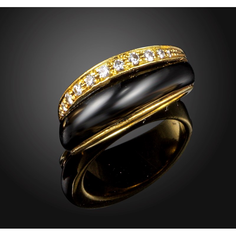 An onyx and diamond ring