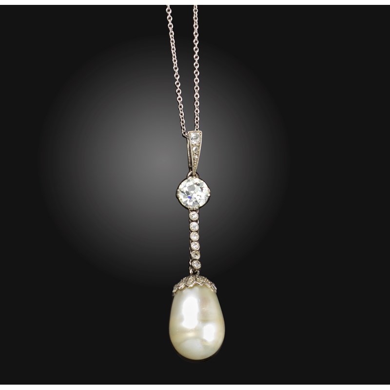 A natural pearl and diamond pendant