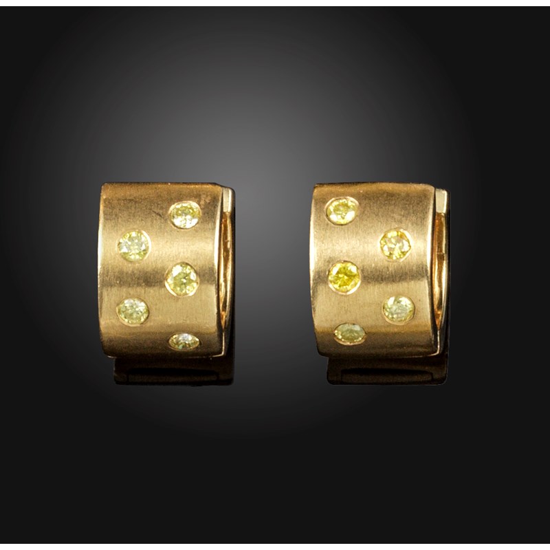 A pair of gold hoop earrings, set with fancy yellow diamonds, 12mm high