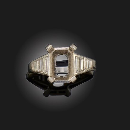 A DIAMOND-SET RING MOUNT, with tapering baguette-cut diamond-set shoulders, in platinum, signed Monture, with French control mark, size I