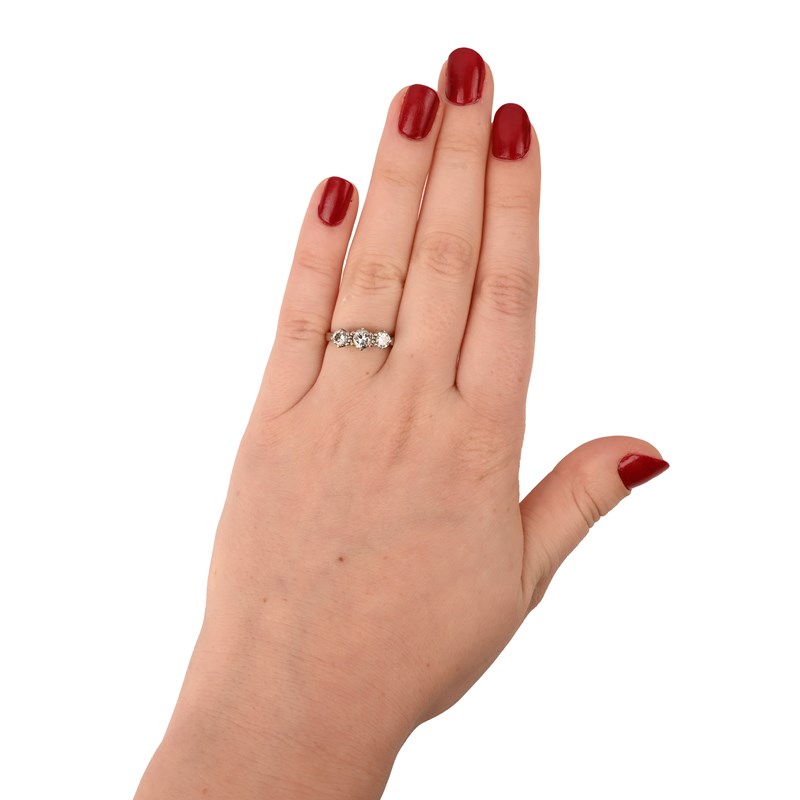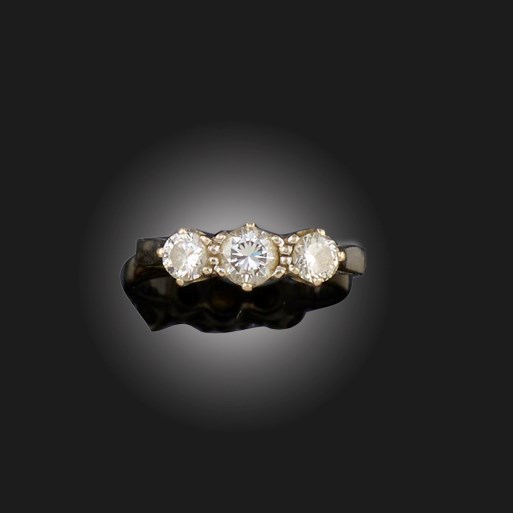 A DIAMOND THREE STONE RING, the three round brilliant-cut diamonds weighing approximately 0.75cts in total, in 18ct white gold, London hallmarks for 1976, size L 1/2