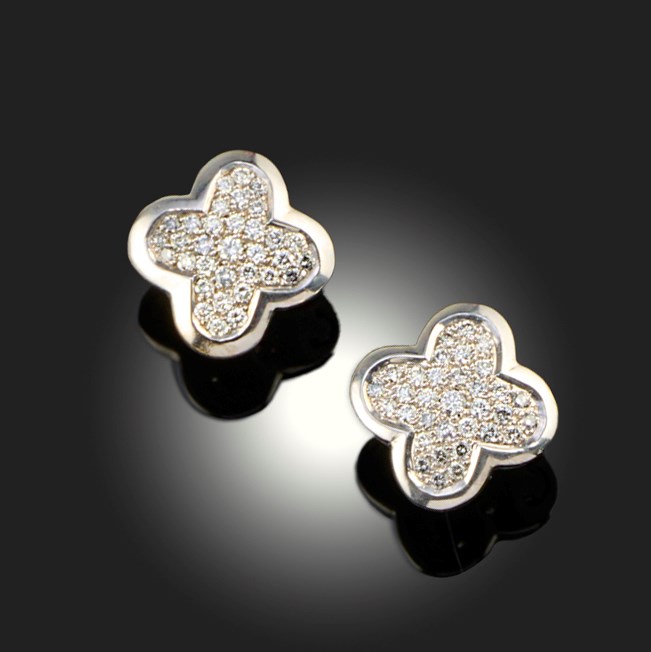 A PAIR OF DIAMOND QUATREFOIL EARRINGS