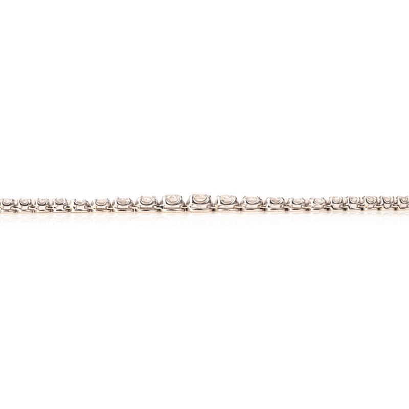 A LONG DIAMOND NECKLACE, set with round brilliant cut diamonds which graduate to larger and smaller stones, in white gold, stamped 750, total approximate diamond weight 9.00cts, length 81cm