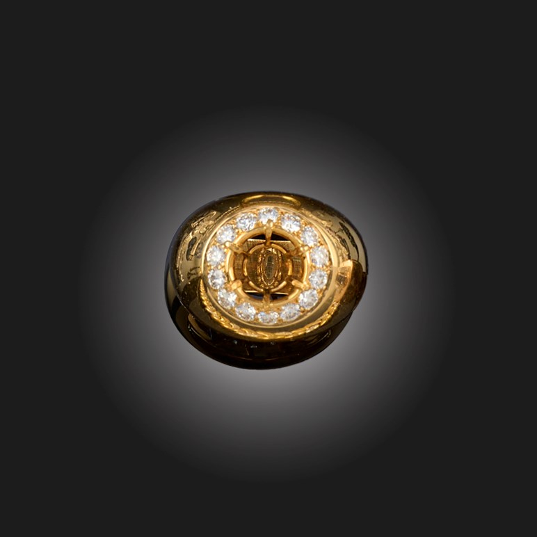 VAN CLEEF & ARPELS, A DIAMOND-SET RING MOUNT, set with a border of round brilliant-cut diamonds, in yellow gold, signed Van Cleef & Arpels with rubbed makers lozenge, stamped 750, French control marks, numbered S15502, size N, 17g