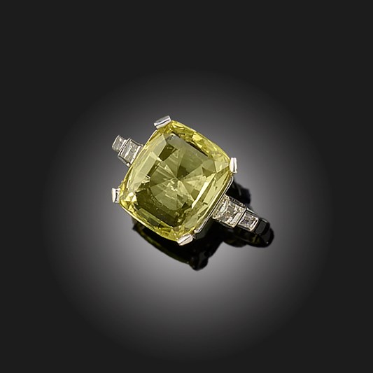 A CHRYSOBERYL AND DIAMOND RING