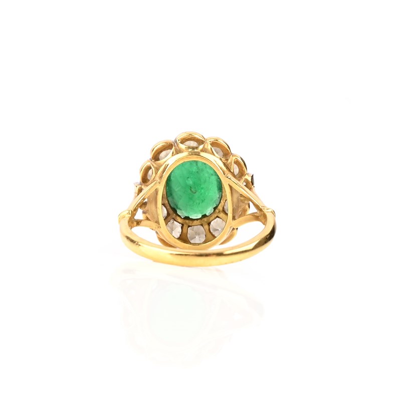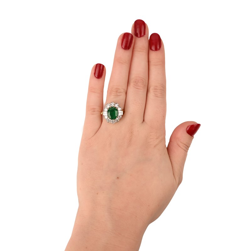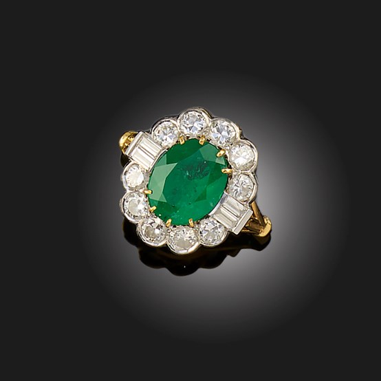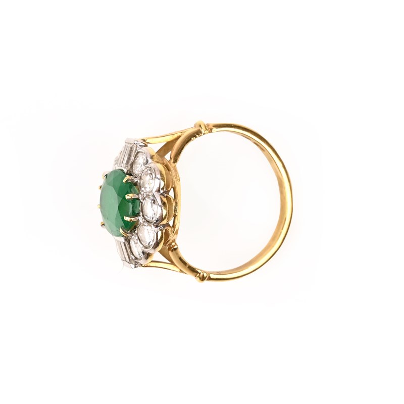 AN EMERALD AND DIAMOND CLUSTER RING