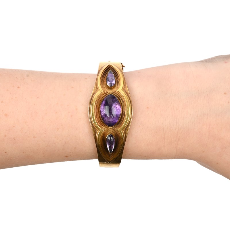 A VICTORIAN AMETHYST-SET GOLD BANGLE, C1867