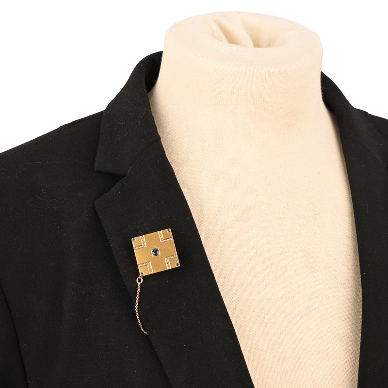 A SAPPHIRE, DIAMOND AND GOLD BROOCH