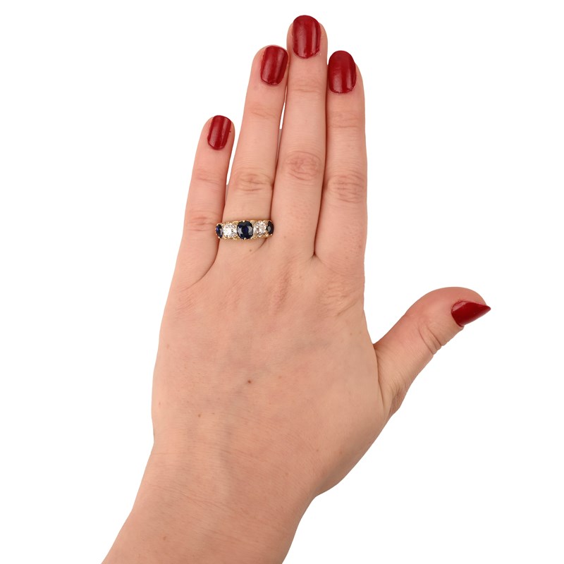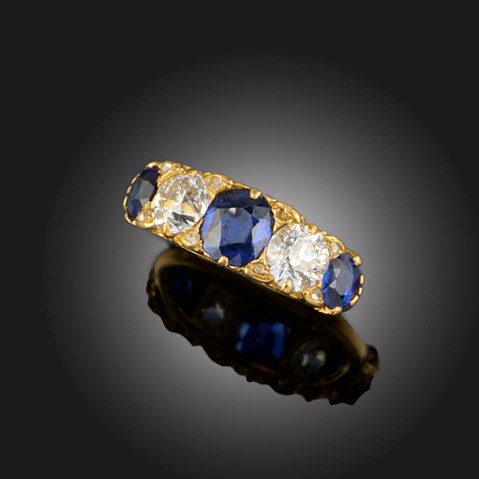 A SAPPHIRE AND DIAMOND FIVE STONE RING