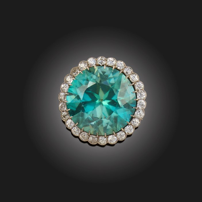 AN EARLY 20TH CENTURY ZIRCON AND DIAMOND CLUSTER BROOCH