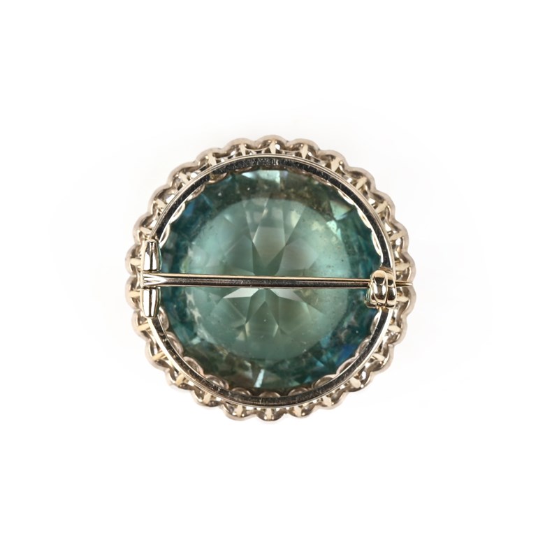 AN EARLY 20TH CENTURY ZIRCON AND DIAMOND CLUSTER BROOCH, the old circular-cut zircon within a border of old circular-cut diamonds, in silver and gold with later rhodium plating, diameter 2.5cm