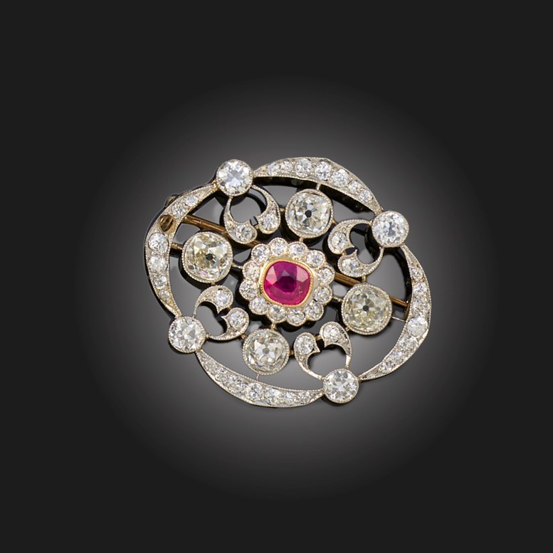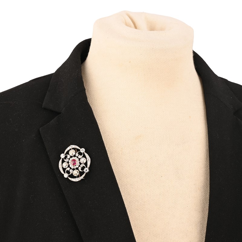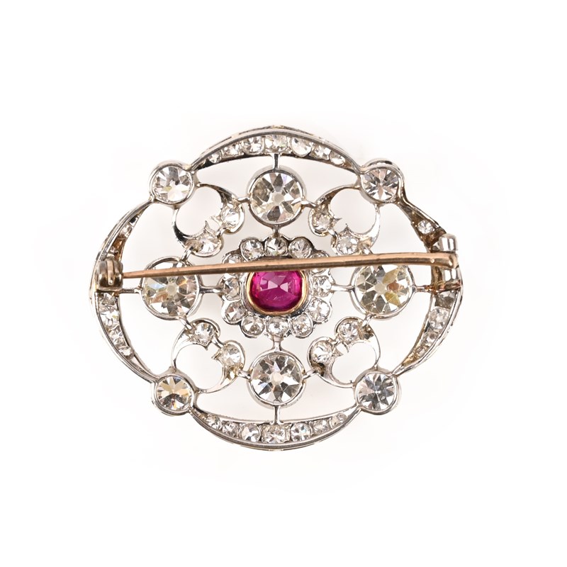AN EDWARDIAN RUBY AND DIAMOND BROOCH