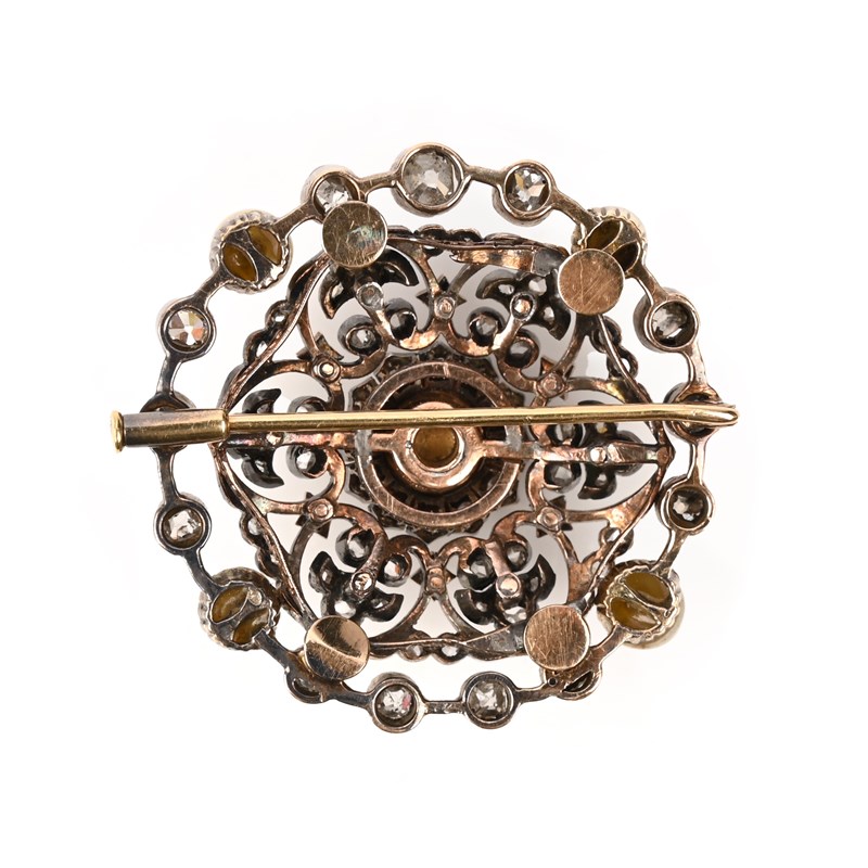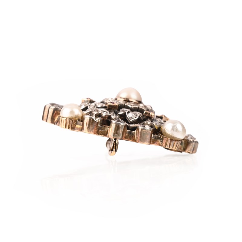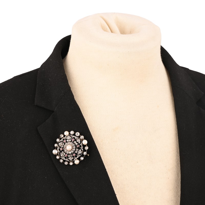 A VICTORIAN DIAMOND, RUBY AND PEARL BROOCH