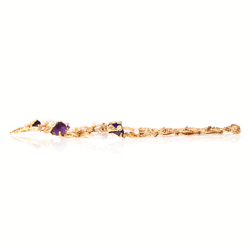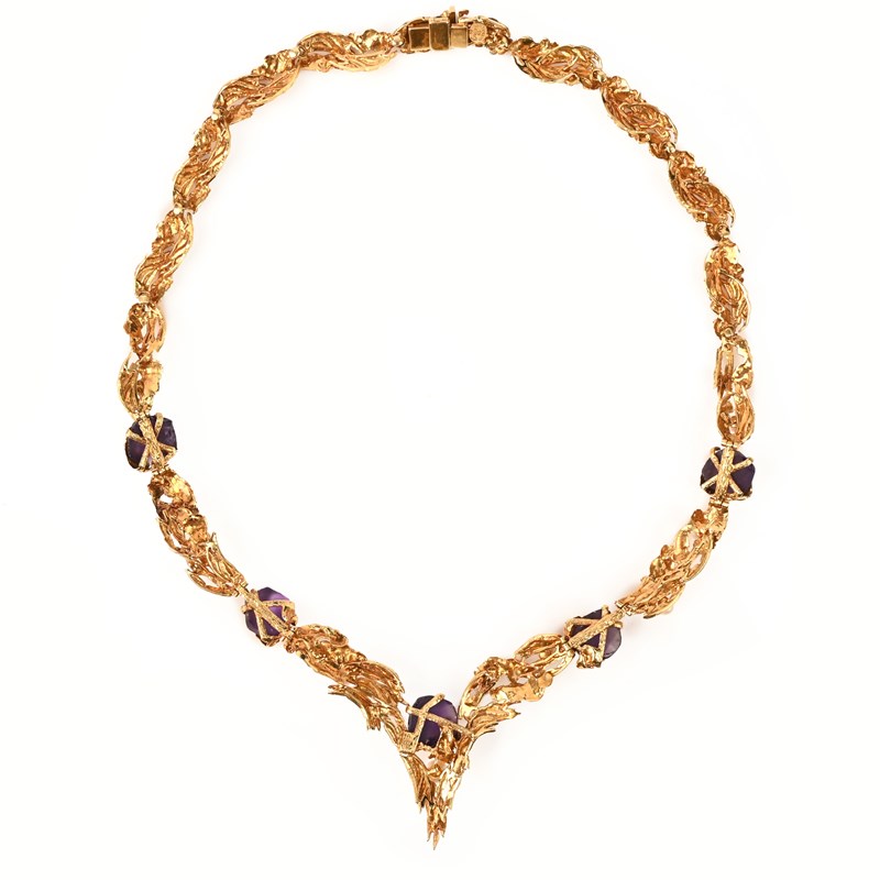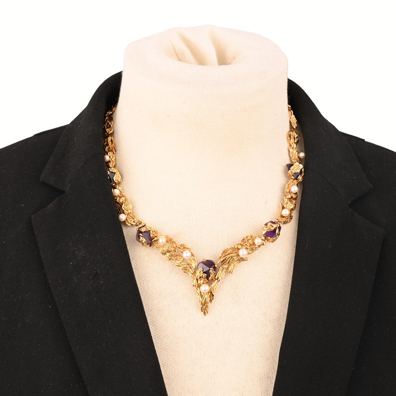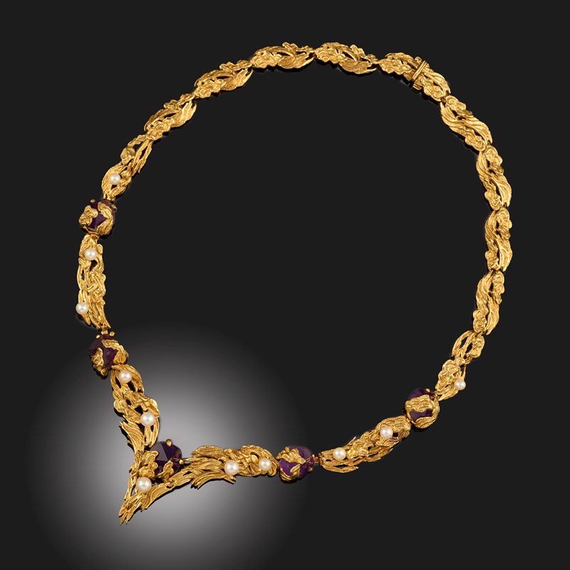 GROSSE, AN AMETHYST, CULTURED PEARL AND 18CT GOLD NECKLACE, C1965