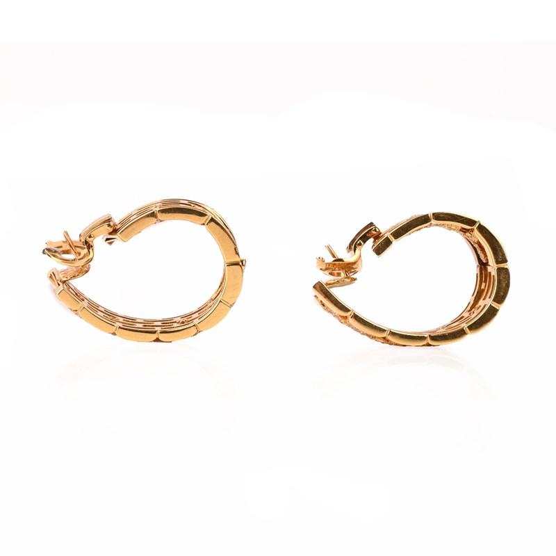 CARTIER, A PAIR OF DIAMOND 'MAHANGO PANTHÈRE' EARRINGS, designed as wide yellow gold hoops with pavé set diamond panther motifs stalking around the back to the front, signed Cartier, stamped 750 with makers mark and French Assay marks, numbered 627333, width 1.4cm, length 3.6cm, 46.5g, Cartier pouch