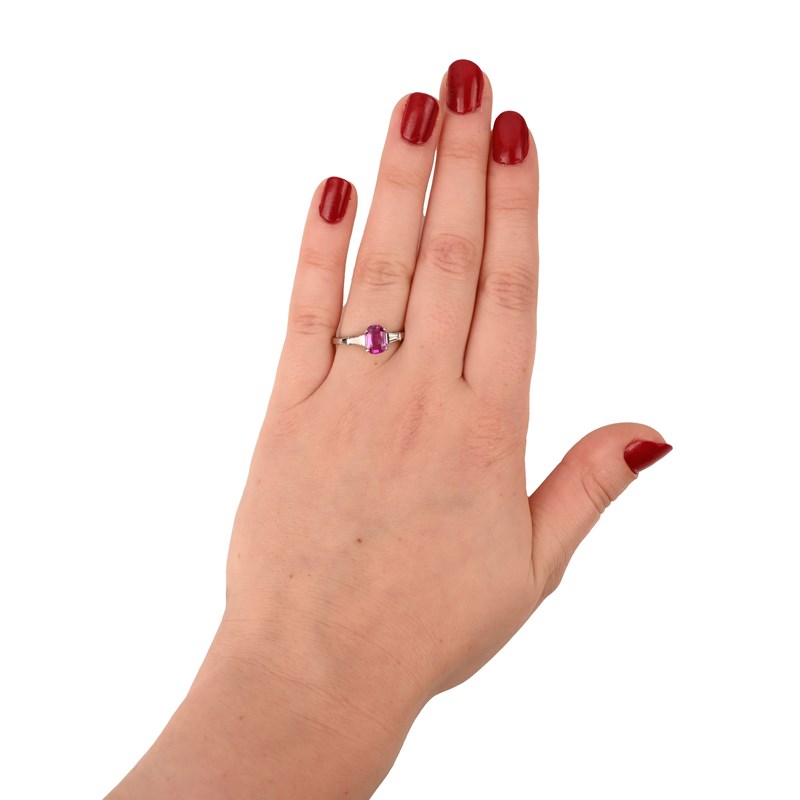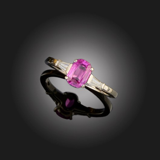 Accompanied by GCS report number 5786-0020 stating that the natural cushion-cut pink sapphire weighs approximately 1.25cts and shows no indication of heat treatment, origin: Burma (Mogok)