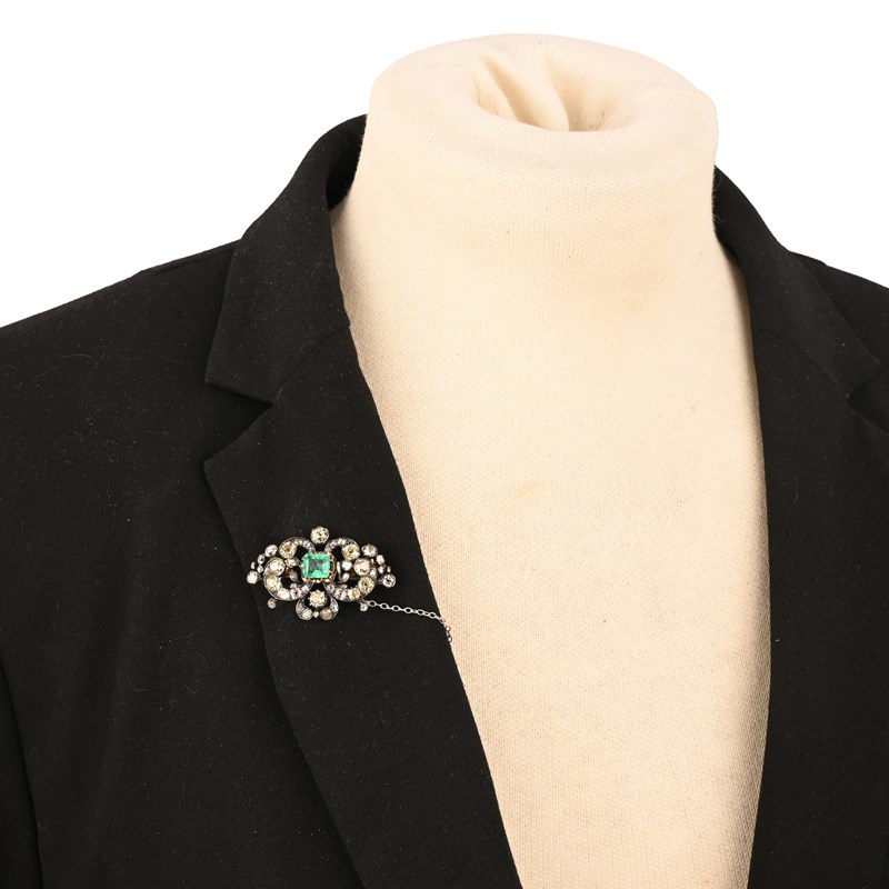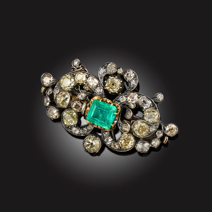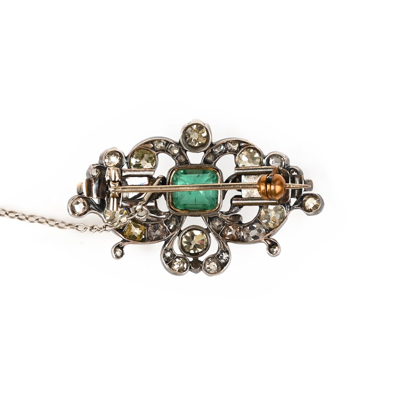 A VICTORIAN EMERALD AND DIAMOND BROOCH/CLASP