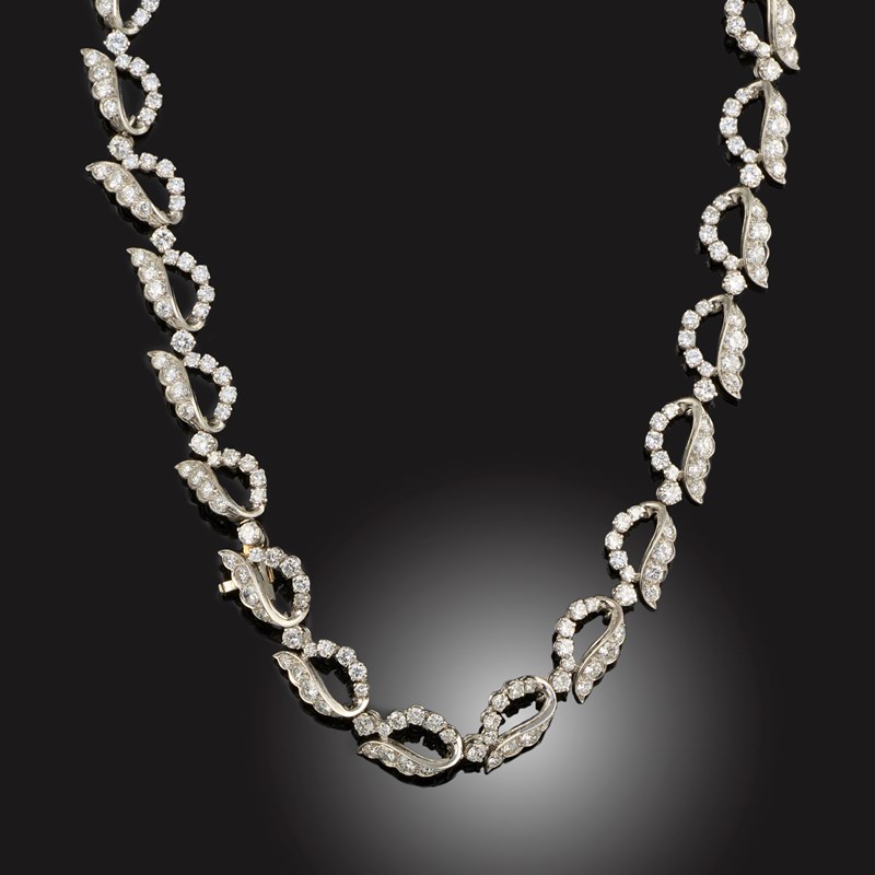 A FRENCH DIAMOND SCROLL NECKLACE