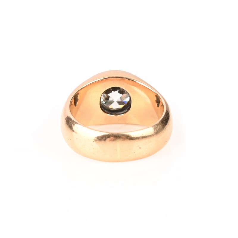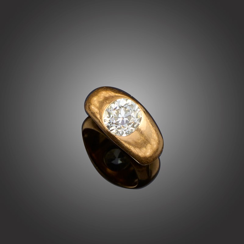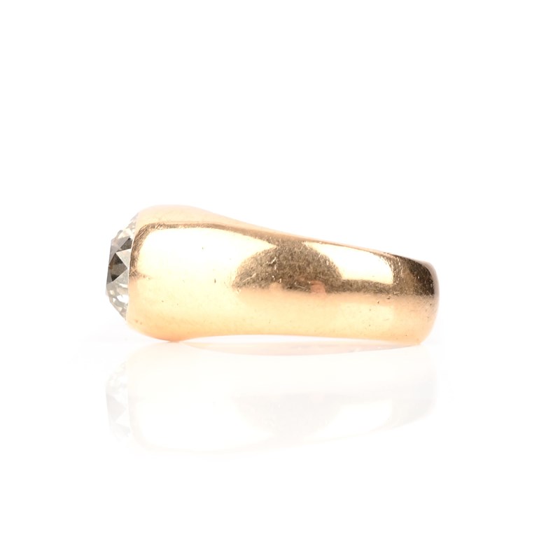 A DIAMOND SOLITAIRE RING, the old circular-cut diamond weighing approximately 2.20cts in a plain rubover gold setting, size K 1/2, gross weight 11g