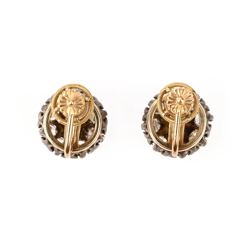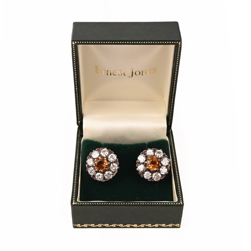 A PAIR OF CITRINE AND DIAMOND EARRINGS, 19TH CENTURY AND LATER, each set with a circular-cut citrine within a border of round brilliant-cut diamonds, mounted in silver and gold, screw fittings, diameter 1.5cm