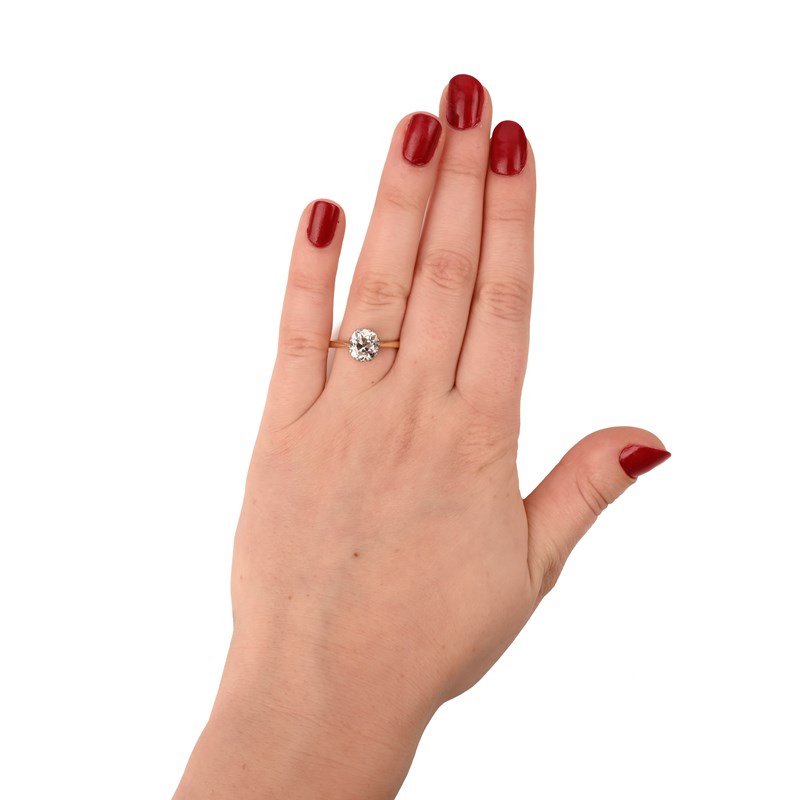 A DIAMOND SOLITAIRE RING, set with an old cushion-cut diamond weighing approximately 2.50cts, in 18ct yellow gold, maker's mark CPM, Birmingham hallmarks and stamped 750, size P
