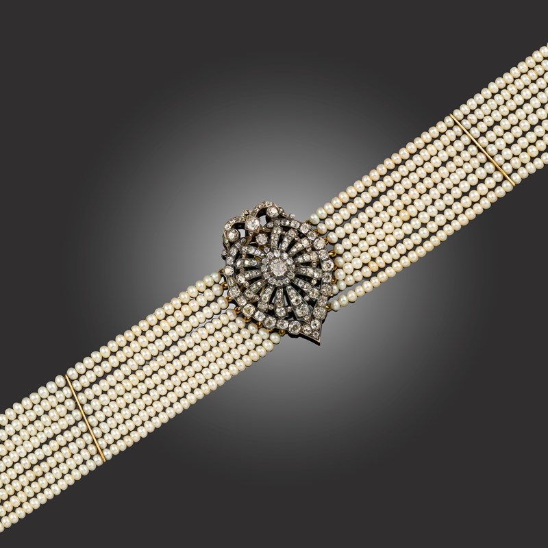 A CULTURED PEARL AND DIAMOND CHOKER NECKLACE