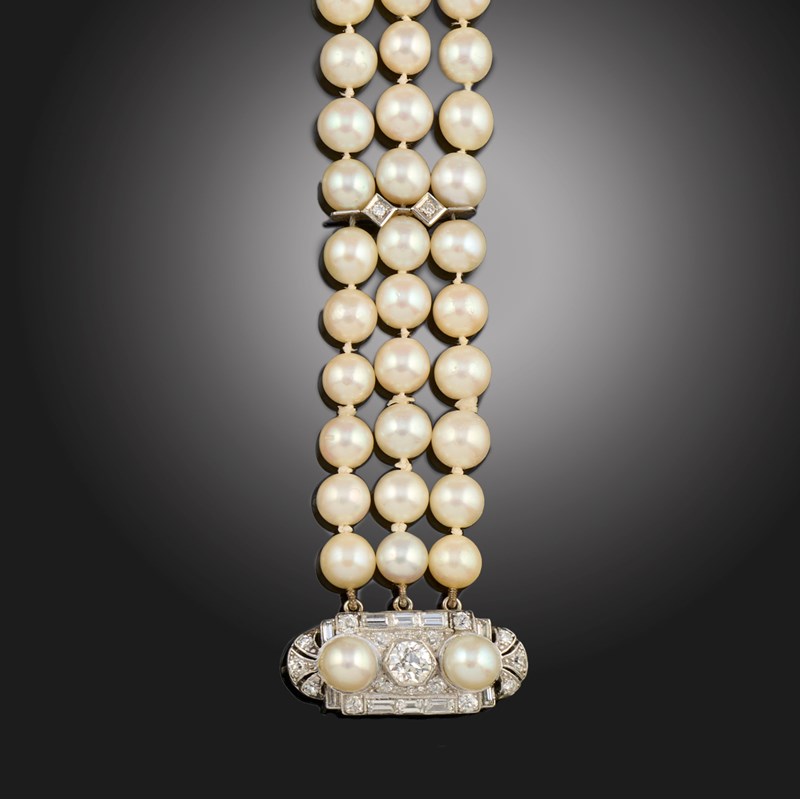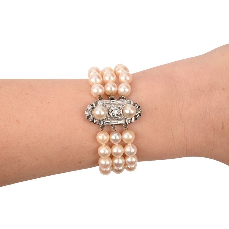 A CULTURED PEARL AND DIAMOND BRACELET