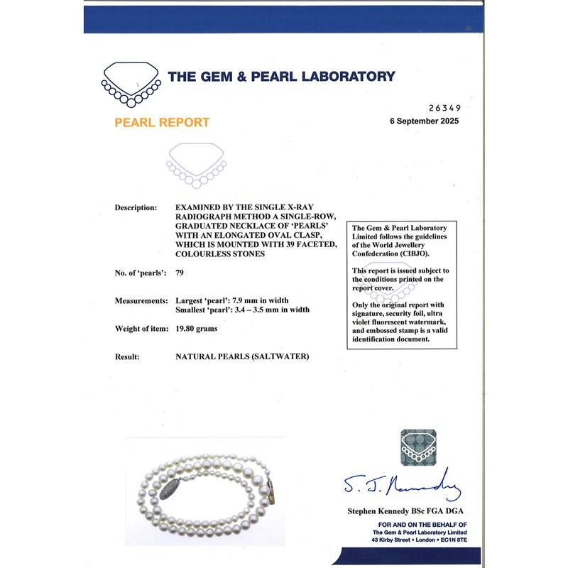 Accompanied by report number 26349 dated 6th September 2025 from The Gem and Pearl Lab stating that the pearls are natural saltwater