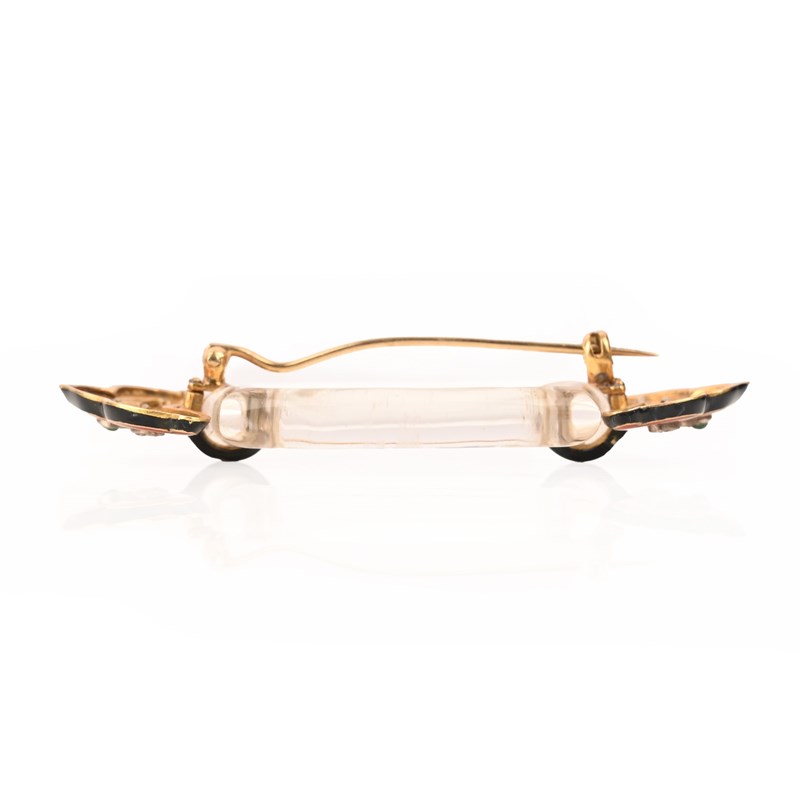 AN ART DECO ROCK CRYSTAL, ENAMEL, DIAMOND AND EMERALD BROOCH