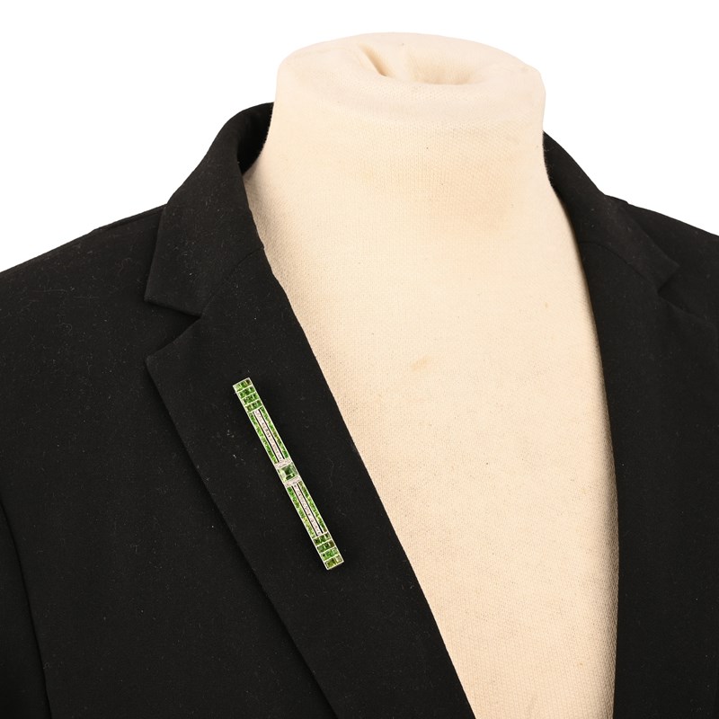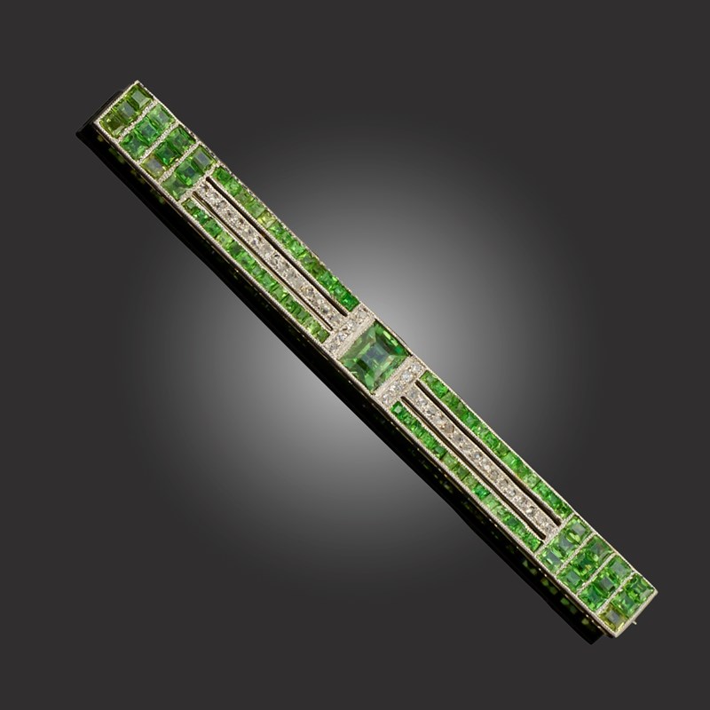 AN EARLY 20TH CENTURY DEMANTOID GARNET AND DIAMOND BROOCH
