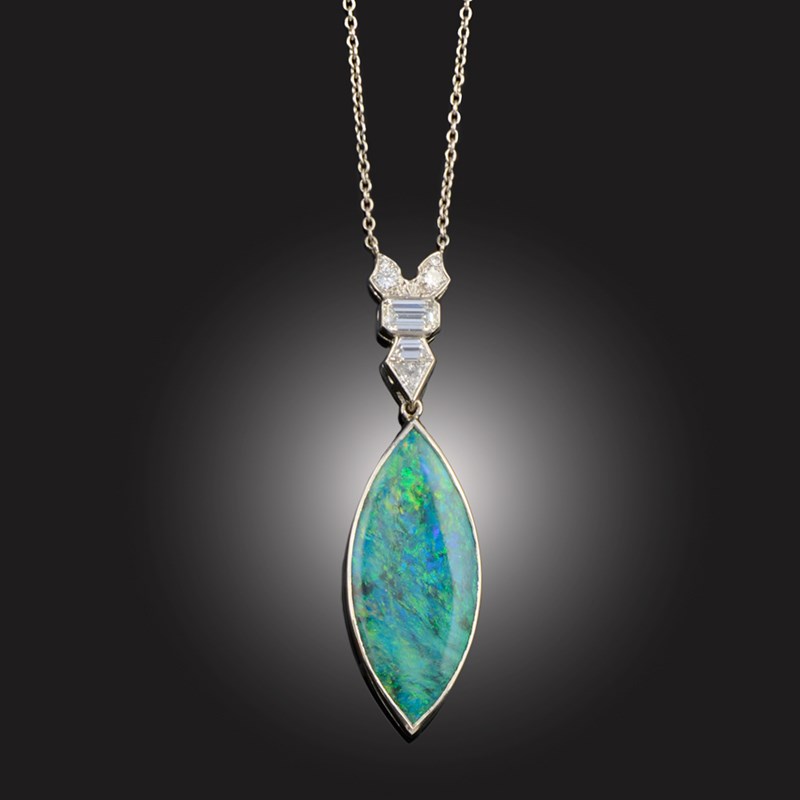 A BLACK OPAL AND DIAMOND PENDANT
