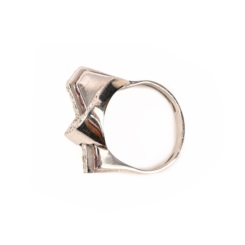AN ODEONESQUE RUBY AND DIAMOND RING