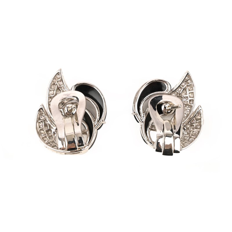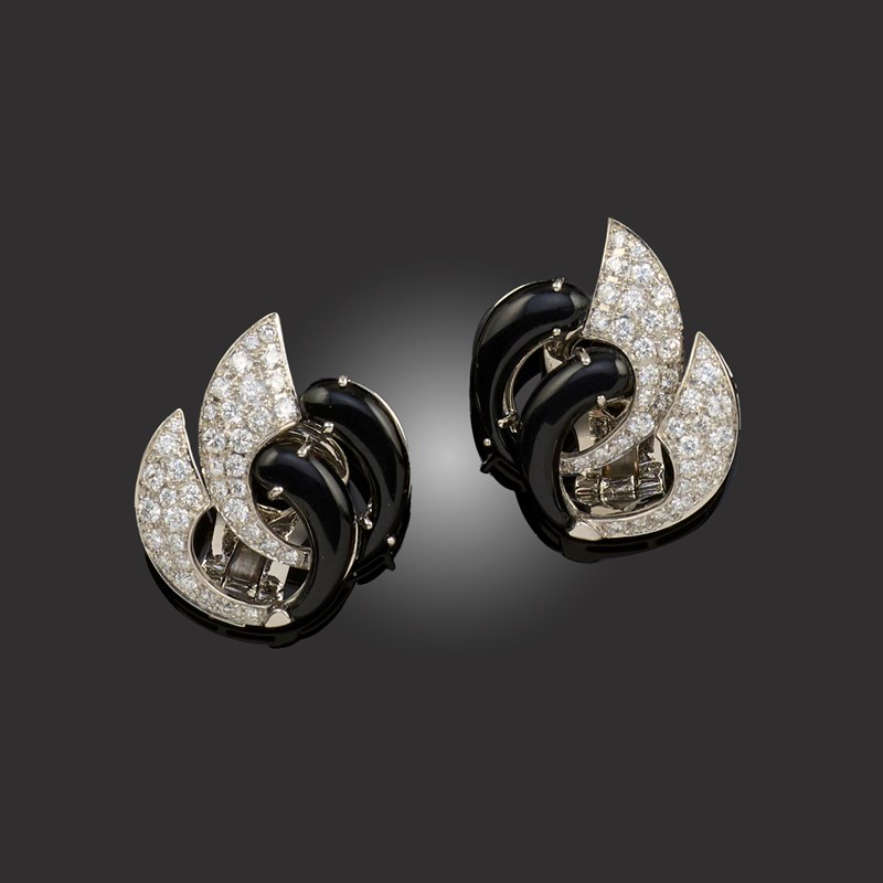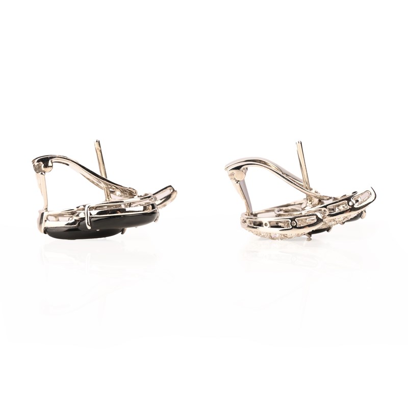 A PAIR OF ONYX AND DIAMOND EARRINGS