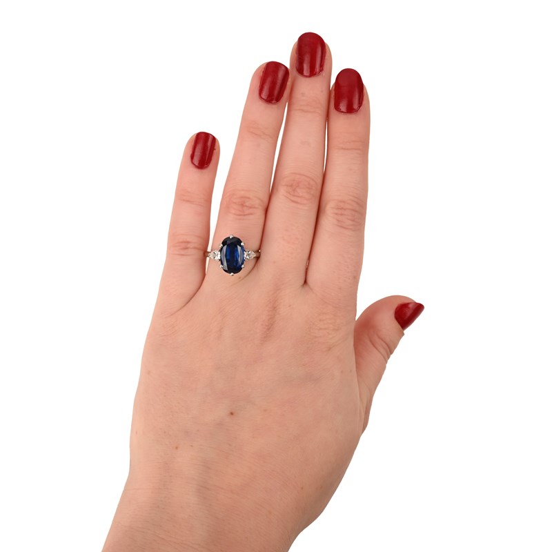 A verbal report from GCS (5786-0339) dated 31st October 2025 stated that the oval cut sapphire shows indications of heat treatment, origin: Basaltic