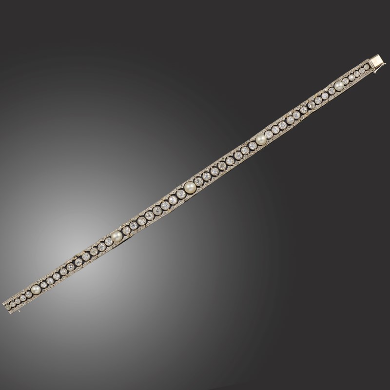 AN ART DECO NATURAL PEARL AND DIAMOND BRACELET