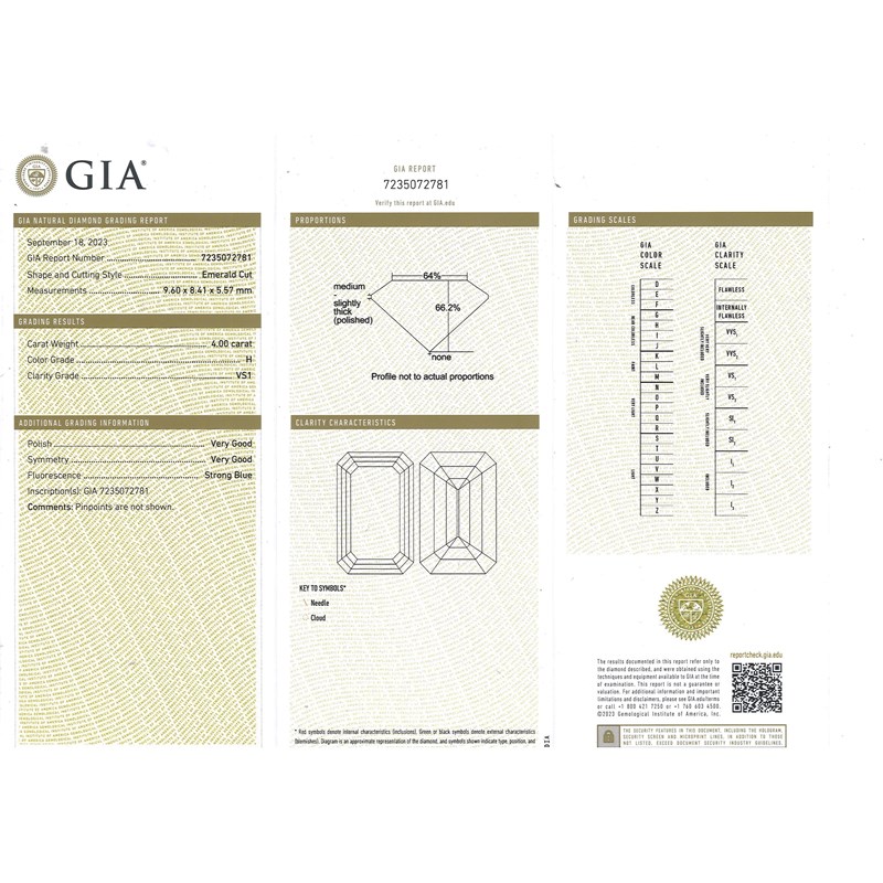 Accompanied by report number 7235072781 dated 18th September 2023 from GIA stating that diamond weighing 4.00cts has H colour VS1 clarity